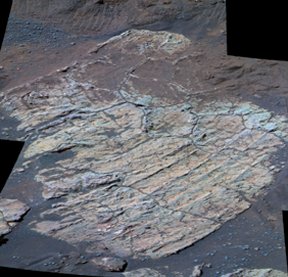 On the southwestern slope of the shallow, stadium-size crater in which it landed, the rover Opportunity has found that several flat rocks bear a geometric network of fractures. The fractures resemble mud cracks on Earth, which form when water-soaked soil dries and contracts, notes rover researcher John Grotzinger of the Massachusetts Institute of Technology.