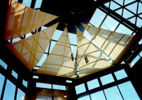 Another question concerned large cloth triangles that served as window shades high up in the gallery’s crystal towers. How would you go about estimating the amount of material required to make one of these triangular sails? One group of students attempted to answer the question by measuring the shadow cast by a shade on the floor far below.