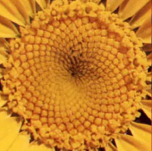 Plants with spiral patterns related to the golden angle also display another curious mathematical property. The seeds of a flower head form interlocking spirals in both clockwise and counterclockwise directions. The number of clockwise spirals differs from the number of counterclockwise spirals, and these two numbers are called the plant’s parastichy numbers (pronounced pi-RAS-tik-ee or PEHR-us-tik-ee).