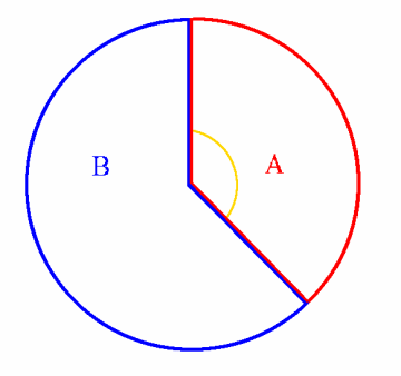 A surprising number of plants have spiral patterns in which each leaf, seed, or other structure follows the next at a particular angle called the golden angle. The golden angle is about 137.5º. Two radii of a circle C form the golden angle if they divide the circle into two areas A and B so that A/B = B/C.