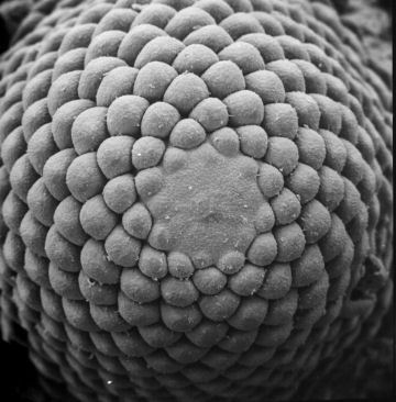 Images from electron microscopes have confirmed Hofmeister’s theory. Furthermore, in 2000, Didier Reinhardt of the University of Fribourg worked out the biochemistry within a plant that creates this behavior. As a primordium forms, it absorbs a plant hormone called auxin that promotes growth. The most auxin is left in the area furthest from other primordia, so the primordium moves in that direction.