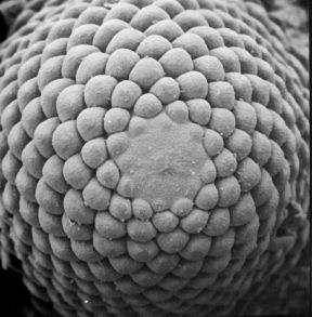 Hofmeister proposed that each new primordium develops on the tip of the growing stem in the spot that is farthest from older primordia. As the tip continues to grow from its center, the primordia are pushed outward and form spiral patterns. In recent decades, electron microscope images have added support to the idea that primordia arrange themselves according to Hofmeister’s rule.