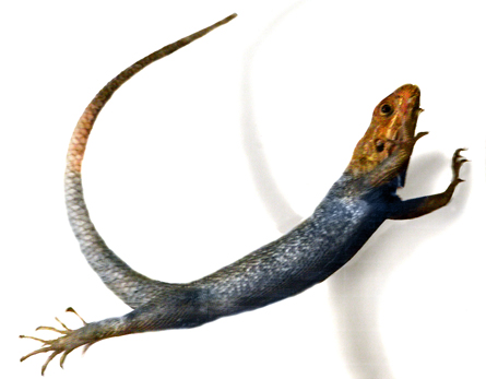 Researchers have confirmed a 40-year-old hypothesis regarding dinosaur acrobatics by studying Agama lizards. The critters arch their tails towards their heads when leaping to prevent a nose dive, a team reports online January 4 in Nature.