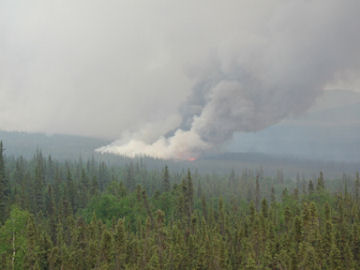 TAINTED SMOKE. Plumes lofted from wildfires in Northern Hemisphere peat lands and forests, such as this Alaskan blaze in June 2003, annually release about 340 tons of mercury.