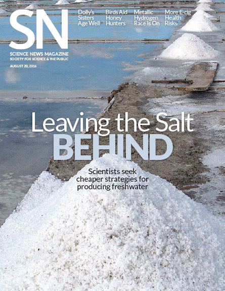 In “Quenching society’s thirst” (SN: 8/20/16, p. 22), Thomas Sumner reported on next-generation desalination technologies that use improved and energy-efficient materials. Desalination efforts could help meet the world’s growing need for freshwater.