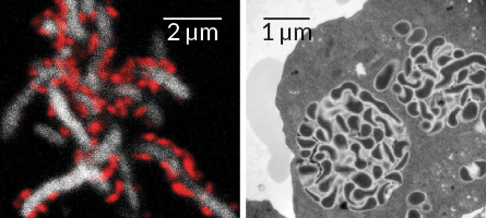 “The really remarkable thing is we finally found out how it lives,” McLean says, and why it wouldn’t grow in the lab. They discovered that this species of TM7, like the miniature bacteria in Colorado groundwater, doesn’t have the cellular machinery to get by on its own. Even more unusual, these bacteria pilfer missing amino acids and whatever else they need by latching on, like parasites, to a larger bacterium. Eventually they can kill their host. “We think this is the first example of a bacterium that lives in this manner,” McLean says.