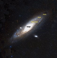 Astronomers have recently found evidence that thick disks may be routine features of spiral galaxies. In a study of 47 spiral galaxies that span a wide range of masses, Julianne J. Dalcanton of the University of Washington in Seattle and Rebecca A. Bernstein of the University of Michigan in Ann Arbor found that all of them have thick disks. The astronomers note that they can’t study these thick disks with anywhere near the detail that Gilmore has uncovered in the Milky Way. But the red hue of these disks suggests they are composed of old, red stars–just as the thick disks of our galaxy–the researchers reported in the September Astronomical Journal.