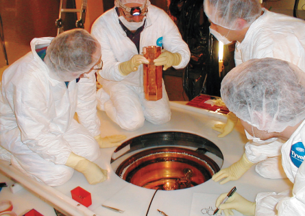 In a clean room accessible only by researchers dressed in full protective regalia — white jumpsuit, booties and gloves — the team is now building a new experiment at the Soudan mine, SuperCDMS. With nearly four times the mass of the old experiment and many times the sensitivity, SuperCDMS has the capability to find more WIMPs per year than its predecessor.