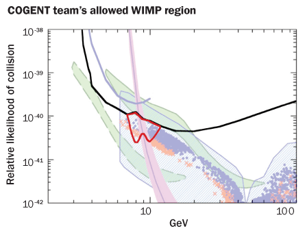 Though the preliminary result is based on only two months of data, the COGENT finding has taken on added importance because it dovetails with results recorded over the past decade by an experiment named DAMA/LIBRA, say Weiner and theorist Dan Hooper of Fermilab. DAMA/LIBRA, short for Dark Matter Large Sodium Iodide Bulk for Rare Processes, hunts for dark matter at Gran Sasso, an underground laboratory in central Italy, and was the first to consistently report evidence of the particles.