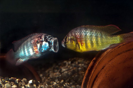 Even though a male cichlid is one tough fish, he may be scared of his own reflection. A new study shows that squaring off to fight a mirror opponent can be worse than fighting a real foe.