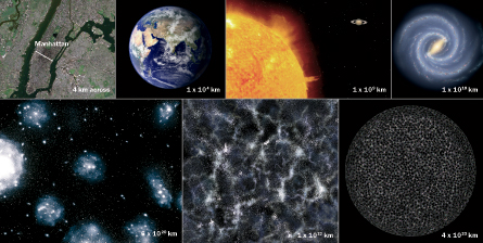 Understanding the universe requires recognizing its immense scale. Zooming out from Manhattan reveals the Earth, solar system, galaxies and then walls of galaxies separated by voids. At the most distant scales, the universe looks uniform.