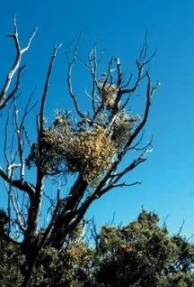 News Ecosystems Mistletoe, of all things, helps juniper trees By Susan Milius January 2, 2002 at 1:30 pm - More than 2 years ago Share this:Share Share via email (Opens in new window) Email Click to share on Facebook (Opens in new window) Facebook Click to share on Reddit (Opens in new window) Reddit Click to share on X (Opens in new window) X Click to print (Opens in new window) Print Often dismissed as the parasitic kiss of death, mistletoes turn out to form complex relationships with their trees, sometimes fostering new life. A clump of mistletoe may kill a juniper branch but boost opportunities for seedlings. Van Ommeren A spiky mistletoe species on juniper trees attracts birds that spread the trees’ seeds, says Ron J.