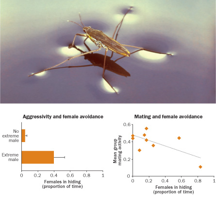 Sih and Watters divided male striders into groups based on their aggressiveness and activity level, and settled each cluster with some females in its own pool. Groups with the more aggressive males tended to dash about more actively, exploring for food and females, than pool-potato groups did. In theory, all that activity could have meant more mating, but that’s not what happened in the rambunctious clusters. They failed to reap any activity bonus in mating, Watters says.
