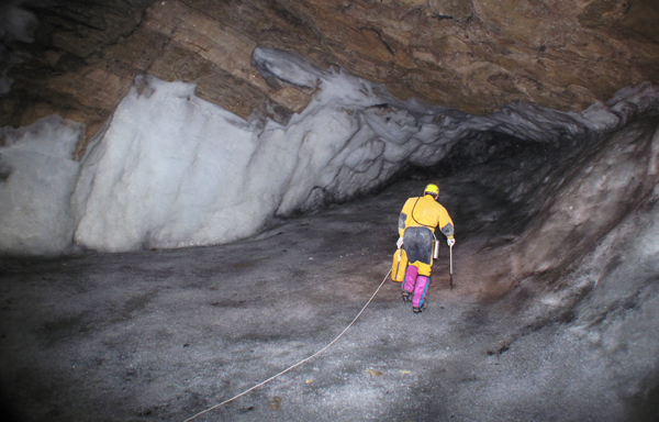 A researcher works in Ledyanaya Lenskaya Cave, in northern Siberia.