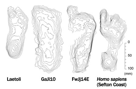 Bennett’s team argues that the Laetoli prints, which are smaller than those at Ileret, show signs of an upright gait combined with a shallower arch and more angled big toe than seen at Ileret.