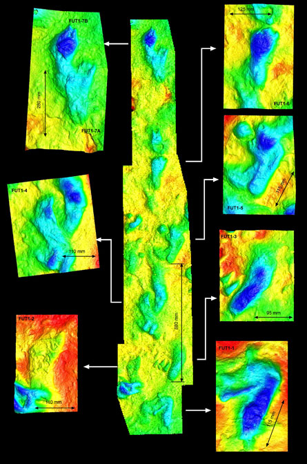 Measures of the size, spacing and depth of the Ileret impressions allowed the researchers to estimate individuals’ heights, weights and stride lengths, all of which fell within the range of modern humans. Digitized images of the newly discovered footprints show a big toe in line with the other toes, an arrangement that contrasts with the angled, grasping big toes of apes. Other humanlike features of the prints include a pronounced arch and short toes.