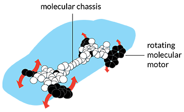 Up to 50,000 of the motors could span the width of a human hair, says Tour. Alone, one of the spinning motors doesn’t pack much punch (SN: 2/7/04, p. 94), but harnessed together in large numbers the little motors can do big work, he says. Groups of the whirring motors powered by light can rotate a glass rod thousands of times their size and do other work on a macroscopic scale. Feringa also harnessed his motors into a four-wheel-drive “nanocar” (SN: 12/17/11, p. 8).