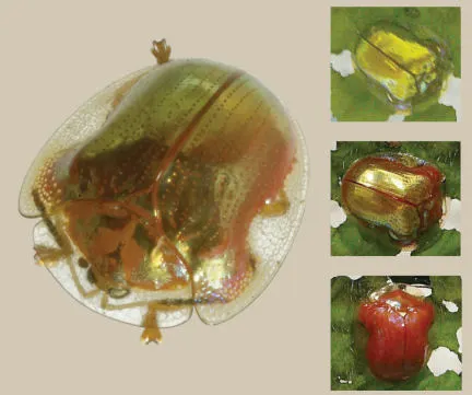 The Panamanian golden tortoise beetle, however, changes color dramatically from metallic gold to matte red by a very different method, researchers report. It uses its body fluid to structurally alter the reflectivity of its shell—a trick that could one day be built into devices that would optically signal the presence of a liquid.