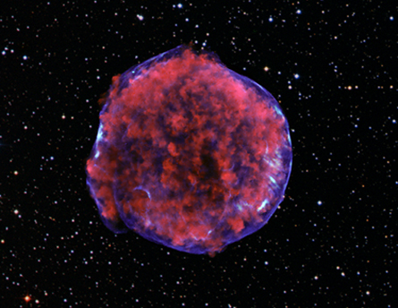 There are two ways to light a cosmic candle. One technique calls for two white dwarf stars; another positions a white dwarf near a larger stellar companion. Both combinations produce type 1a supernovas (pictured here), massive stellar explosions that act as “standard candles” for gauging astronomical distances.