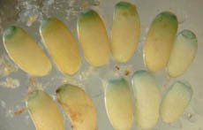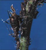 Feature A More Perfect Union Genetic studies show how insects and bacteria within them have teamed up By Jessa Netting May 14, 2001 at 11:28 am - More than 2 years ago Share this:Share Share via email (Opens in new window) Email Click to share on Facebook (Opens in new window) Facebook Click to share on Reddit (Opens in new window) Reddit Click to share on X (Opens in new window) X Click to print (Opens in new window) Print Their domesticated bacteria enable pea aphids to survive on nutrient-poor plant sap. Charles Hedgecock These Buchnera bacteria live in special cells, called bacteriocytes, inside their aphid hosts. Josh White Aphid eggs come packed with starter populations of their endosymbiotic bacteria (green).