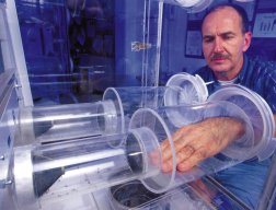 ARS entomologist Daniel L. Kline tested the attractiveness of his own feet to mosquitoes in the lab and outdoors. He wore the same pair of socks 12 hours each day for 3 days. Alone, the socks did not draw many mosquitoes. When combined with carbon dioxide, however, the socks lured many mosquitoes, including disease-carrying species.