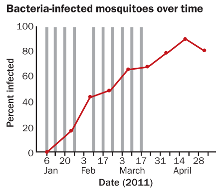 This time, he got his bacteria to infect the mosquitoes and travel from mother to offspring for generations. What made the difference, he speculates, is the four years of growing in mosquito cells.