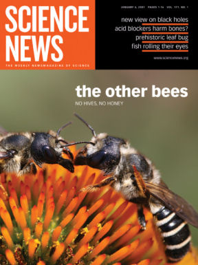Other solitary species also hold promise as crop pollinators, says Cane. He tested the powers of the metallic-green-blue bees Osmia aglaia by caging them with raspberry plants. The berries turned out as plump and plentiful as those on bushes left uncaged for honeybees to work, he reported in the October 2005 HortScience.