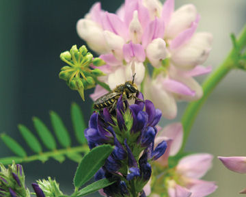 Most U.S. alfalfa is grown for its greenery, to be used as animal forage, so only the suppliers of alfalfa seeds need pollinators. Decades ago, the seed farmers started taking advantage of solitary bees. They had noticed that their crop yielded extra seed when planted near salt flats pockmarked with nesting holes from alkali bees (Nomia melanderi).