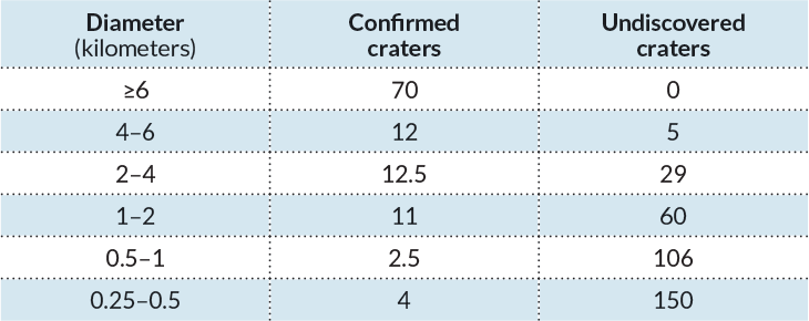 Ninety or more cavities wider than 1 kilometer remain to be found