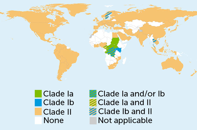 Mpox virus clades around the world, January 2022–September 2024