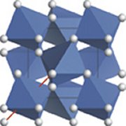 TIGHT SQUEEZE. In this depiction of a silicon dioxide crystal, white balls represent oxygen atoms while the blue octahedrons enclose silicon atoms.