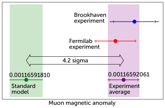 To avoid bias, the team worked under self-imposed secrecy, keeping the final number hidden from themselves as they analyzed the data. At the moment the answer was finally revealed, says physicist Meghna Bhattacharya of the University of Mississippi in Oxford, “I was having goose bumps.” The researchers found a muon magnetic anomaly of 0.00116592040, accurate to within 46 millionths of a percent. The theoretical prediction pegs the number at 0.00116591810. That discrepancy “hints toward new physics,” Bhattacharya says.