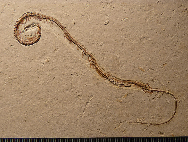“It’s a tremendously important fossil, because it’s the classic missing link,” he says. “It’s got a snakelike body but four little lizardlike legs.”