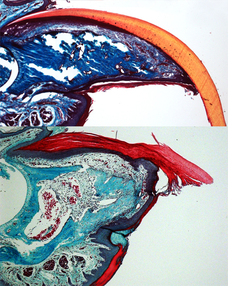 The digit bones can regenerate only if the amputated stump still has some nail stem cells, the researchers found. But the cells alone are not enough; also crucial is a zone of tissue that grows from the stem cells during normal nail growth. After amputation, this tissue sends signals that attract new nerves into the end of the stump and begin the bone regeneration process. If amputation removes the nail zone or if the signals are blocked, the digits will not regenerate.