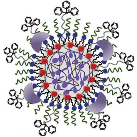 Drugs, dyes and targeting molecules can be arranged on the perimeter or inside of a nanoparticle (illustration shows one that mimics HDL).S. Marrache and S. Dhar/PNAS 2013