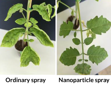 The researchers then spritzed iron- and magnesium-deficient tomato plants with either a standard spray containing iron and magnesium, or a solution containing liposomes packed with those nutrients. Two weeks later, the leaves on plants treated with free-floating nutrients were still tinged yellow and curled. Plants that received liposome treatment sported healthy, green leaves.