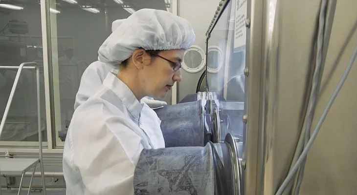 Only five people in the world get to routinely handle these precious pebbles, sample processor Charis Krysher tells me. She’s one of them. But even Krysher and the lucky few can’t touch the samples directly. To pick up an Apollo rock, Krysher must either use stainless steel tweezers or slide her fingers into a third set of gloves made of Teflon.