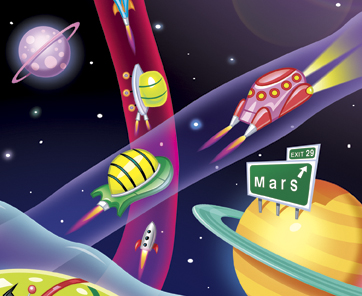 It’s unlikely that astronauts themselves will ever ride the interplanetary superhighway, though they might someday guide telescopes on and off its entry ramps, says Wendell Mendell of NASA Johnson Space Center in Houston. Because the tubes follow such winding routes, trips along them tend to take a long time—compare Belbruno’s 2-year trajectory to the moon to the 4-day Apollo 11 mission, for instance. Using the tubes is like sending cargo down the Mississippi River on a barge, Mendell says. “It’s cheap but slow.”