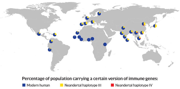 Some of the most Neandertal-rich regions of the modern human genome are those that contain immune system genes. There’s a good reason for that. “Of all the challenges, forces and threats humans have faced over the course of evolution, pathogens have been one of the greatest,” says Lluis Quintana-Murci, a population geneticist at the Pasteur Institute in Paris.