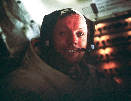 Armstrong was born and grew up in Wapakoneta, Ohio, where he worked odd jobs to pay for flying lessons and earned his student pilot’s license on his sixteenth birthday. With a U.S. Navy scholarship he went on to study aeronautical engineering at Purdue University and then earn a master’s in aerospace engineering from the University of Southern California. Armstrong flew 78 combat missions for the Navy during the Korean War.