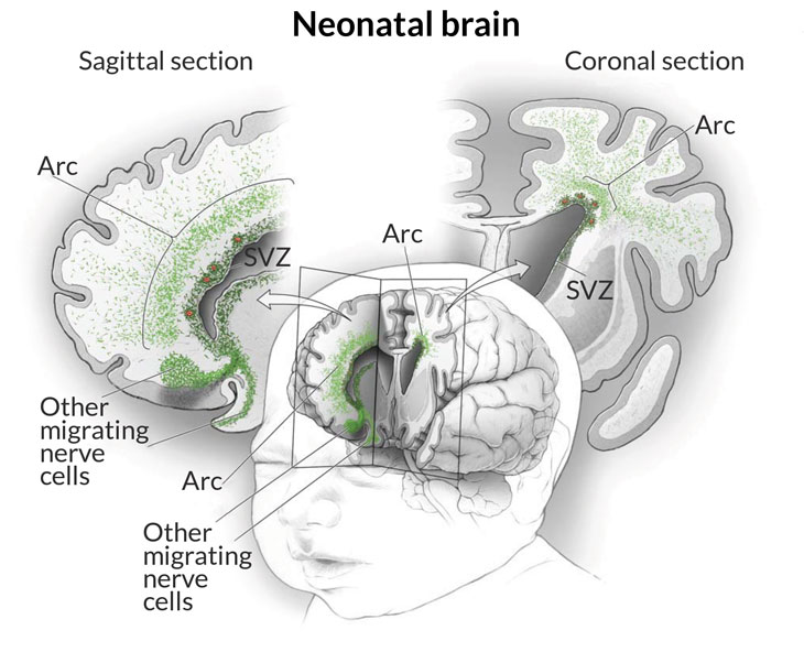 Nerve cell migration after birth may explain infant brain’s flexibility
