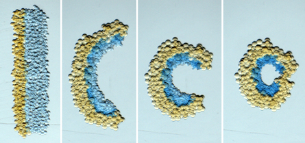 The researchers then put different concentrations of a compound such as salt into droplets in different sections of the network to spur a flow of water from one area to another. As one area of the network swells and another shrinks, the network deforms, going from flat to curved.