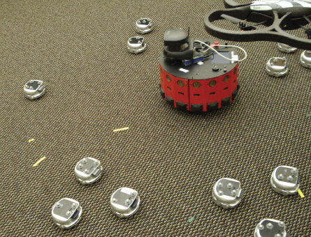 An automated army invades a conference room at Georgia Tech. Researchers there are investigating ways of creating networks to control swarms of robots.