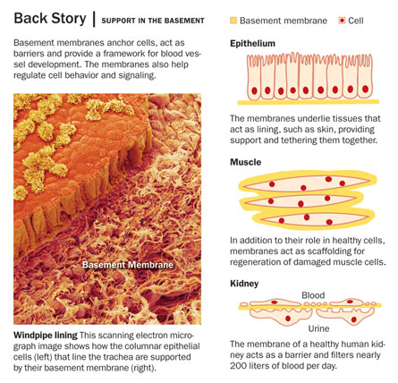 “If the basement membrane misbehaves, then the cell misbehaves,” comments Raghu Kalluri, chief of the matrix biology division at Harvard Medical School in Boston.