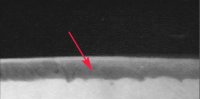 This microradiograph shows an artificial lesion in a tooth at a depth of about 100 microns (arrow).