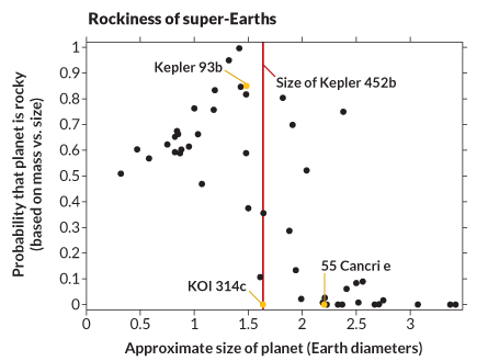 Newly discovered Kepler 452b straddles the line between rocky and gaseous