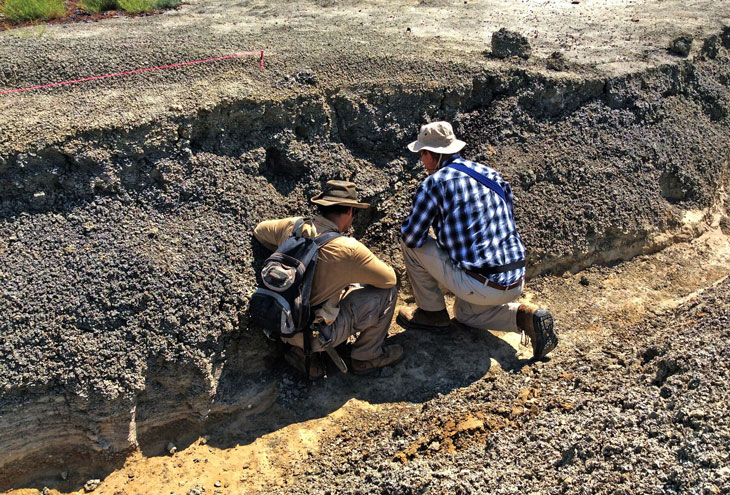 The paper in PNAS does provide evidence that the fossil site opens a window on a key time in Earth’s history. At Tanis, a river once drained eastward from a vast inland sea. Sandy deposits reveal where the meandering river carved a deep channel into the rock. Above that channel lies an unusual rock sequence that DePalma and his colleagues call the “event deposit.” That 1.3-meter-thick layer has two distinct sublayers. The bottom layer has large pebbles at its base and finer-grained sediment toward the top, ending in fine silt. Overlying that is another layer that starts with large sand grains and then gets finer toward the surface. This pattern, and the direction of water flow preserved by the grains, point to massive inundation, DePalma says.