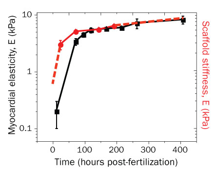 Jennifer Young, a researcher in Engler’s lab, measured the stiffness of chicken hearts at various stages of development. Young developed a gel that mimics the stiffening pattern of the natural tissue. Embryonic heart cells grown in the stiffening gel make more of a heart cell marker compared with cells grown on gels that don’t change stiffness. The researchers haven’t yet grown embryonic stem cells on the gel.
