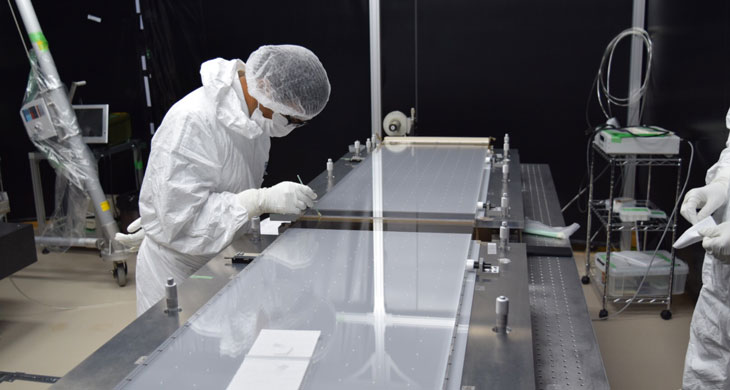 STEADY HANDS Physicist Saurabh Sandilya prepares the quartz bars that help identify particles in Belle-II. Belle II