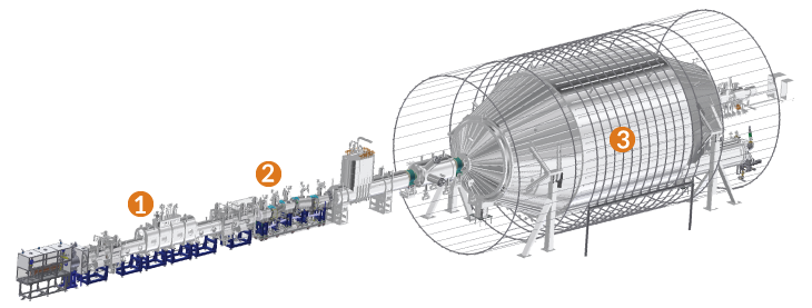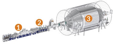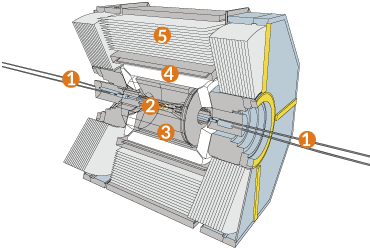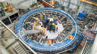 1. An accelerator sends electrons from one end and positrons from the other into Belle II.